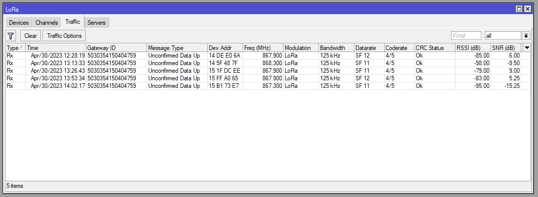 I am receiving messages in the “LoRa - Traffic” tab