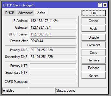 set up DHCP client on the bridge to get an IP address